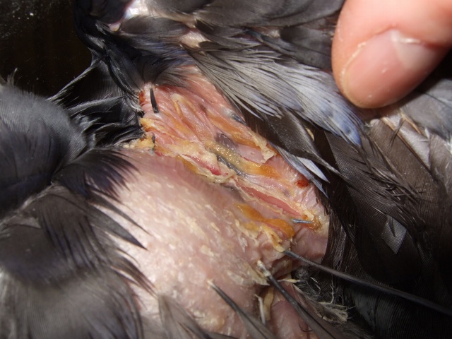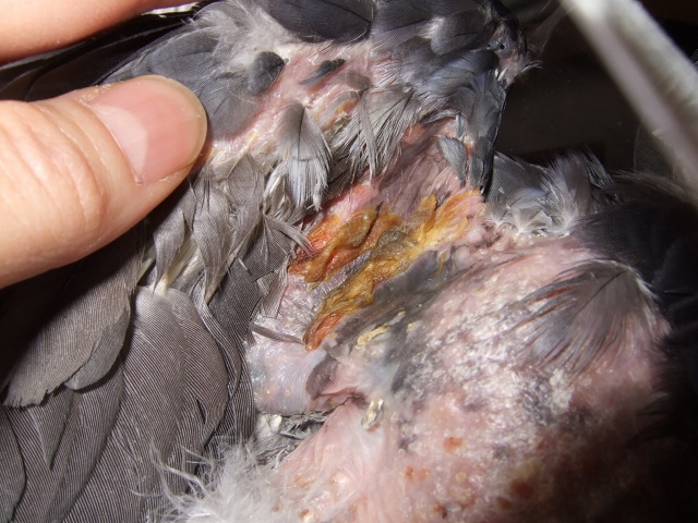 2009年3月12日。 蒸れに加え、オイルを塗りすぎているのも原因ではないかと思い至り、改善することに。 今までは特に洗い流すことなく、上から上からオイルを塗っていた。 そのせいで毛穴がつまり、筆毛が途中で抜けてしまうこともしばしば。 医療関係の友人は、基本は傷口の水洗いだという。 人間の場合、多めの水道水でジャーと流して洗うらしい。 そこで、人肌より温いくらいのお湯を20ccのシリンジに入れ傷口をすすぎ、その後、毛羽立たないタイプの化粧コットンで軽く水を吸い取るようにする。 それから、オイルを綿棒につけて少量を傷口に塗布する。 ちゃんとメモってなかったので正確な時期は不明なのだが、この頃からレメディを徐々に止めようとしていたように思う。 そう思ったキッカケは、普通にあーぽんが「もういらない」と意思表示したから。 不安定な時だけ1滴舐めさせていたようで、そのへんのメモは残っている。 適当やなぁ(^^; 右 左