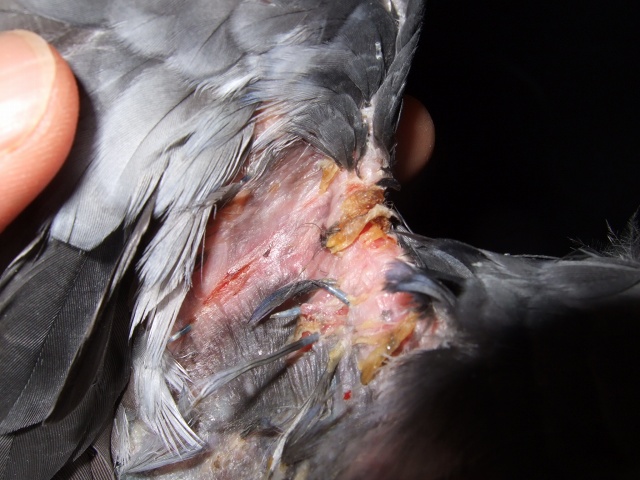 包帯についたカサブタと一緒に筆毛が抜けてしまい、傷口が裏返ったような感じです。