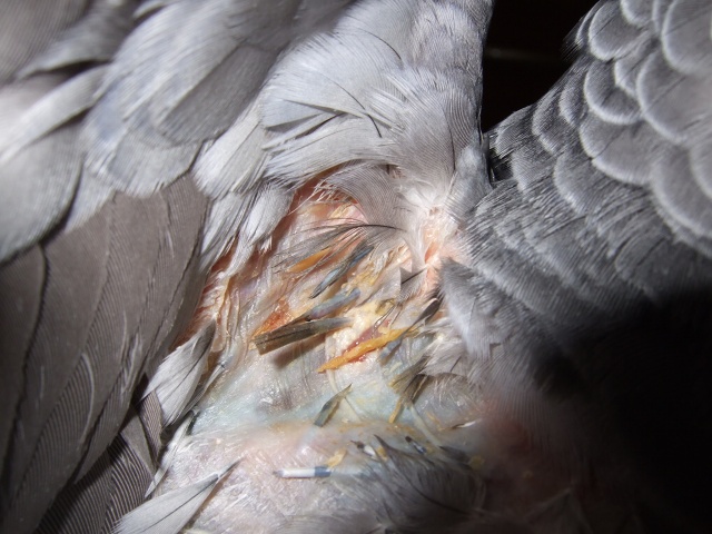 あちこちに傷ができ、羽根がにょきにょき生えてきて更に傷が開き・・・。