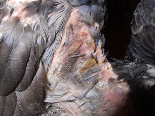 ラッパ型のカラーも攻略されたので、負担の少ないてるてるボーズ型のカラーに戻す。 それでもカサブタが剥がされる。なんでかわからない私。 換羽のせいで首周りに生えた筆毛がカラーと擦れて痛いらしく、抜きまくりハゲてきた。 カラーの首の周りに布製のスタンドカラーを付けてみる。 少しは抜くのがマシになる。 毛づくろいもできるだけ自重。 飛ばないように気をつける。 それでも時々カサブタが取れて出血を繰り返す。やっぱりわからない私。 | アーカイブ